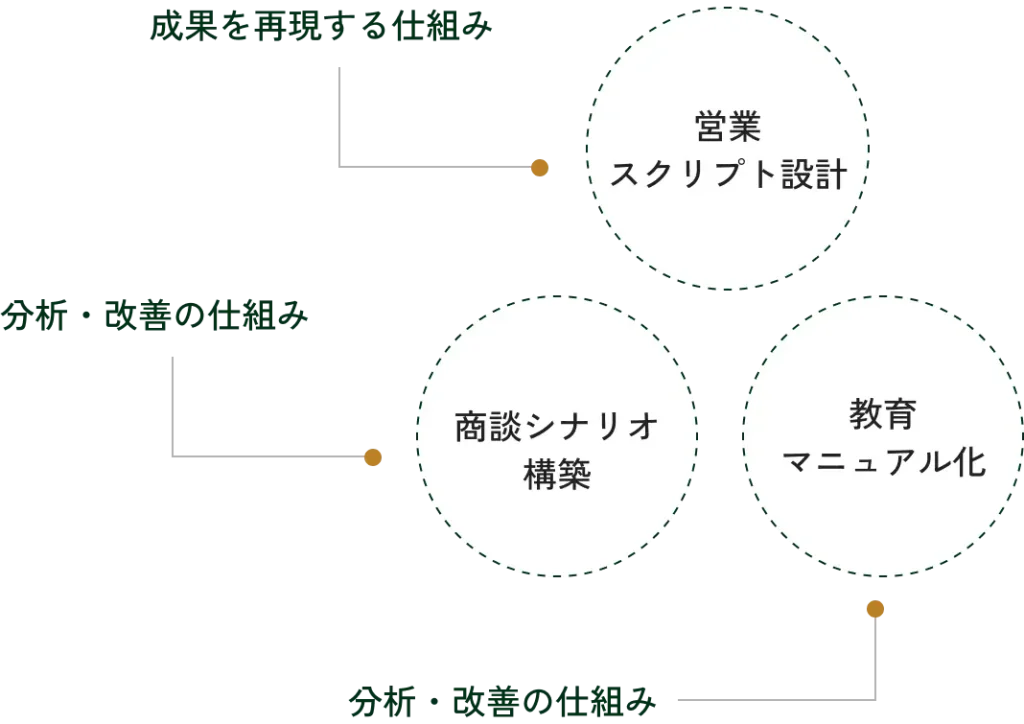 「人が変わっても成果が続く」仕組みを残す。 若手・未経験者でも成果を出せる営業スキルを内製化。