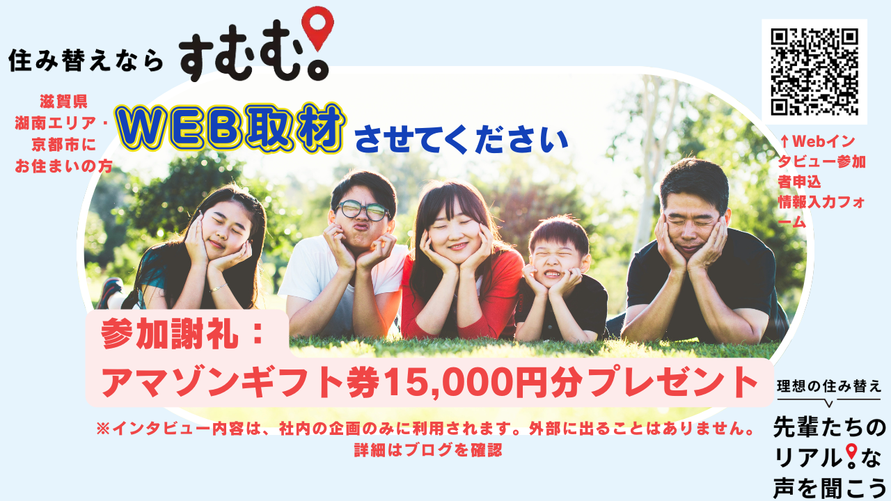 《謝礼あり》滋賀県湖南エリアや京都市ご在住のマンションご購入世帯の方対象☆住んでいる地域のいいところは?などWEBインタビュー♪