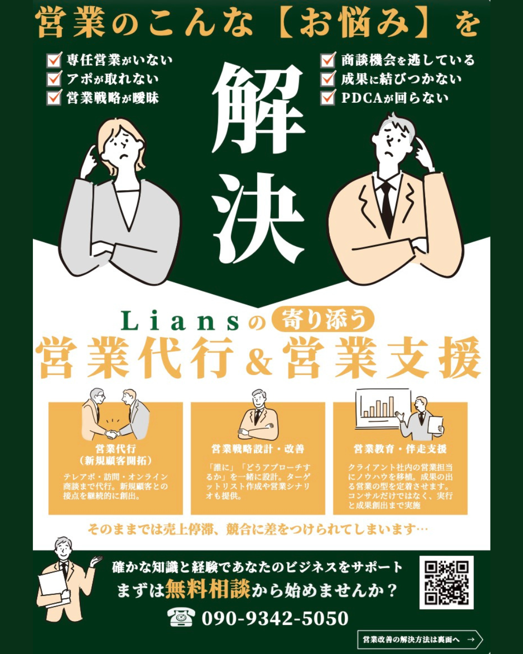 自社が抱えているお悩みを教えてください。(複数選択可) 営業を増やしたいけど、社内に専任の人材がいないテレアポやDMをやってみたけど、成果が出ない・反応が薄い製品・サービスには自信があるのに、うまく魅力が伝わっていない営業のやり方が昔のままで、時代に合っていない気がするリードはあるけど、商談や成約に結びつかないその他(具体的にご記入ください)